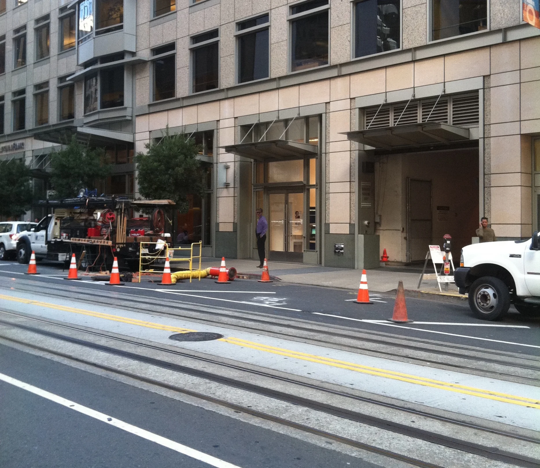 TRADITIONAL UNDERGROUND VAULT REPLACEMENT DISRUPTS LOCAL BUSINESSES AND COMMUNITY AS YOU EXCAVATE A LARGE HOLE, WITH THE HELP OF OVER-SIZED HEAVY MACHINERY, AND SUBSEQUENTLY LIFT THE DECAYING CONCRETE VAULT OUT WITH A LARGE CRANE. THIS 3-4 WEEK PROCESS NOT ONLY CLOSES LANES AND BUSINESSES, BUT LEAVES AN EXPOSED HOLE COVERED ONLY BY TEMPORARY STEEL PLATES AND A CHAIN LINK FENCE. NOT TO MENTION THE SAFETY CONCERNS WITH DRILLING DECAYING CONCRETE AROUND LIVE WIRES, AND THE ENVIRONMENTAL FOOTPRINT FROM ALL OF THE EQUIPMENT AND DISPOSAL OF THE OLD VAULT.